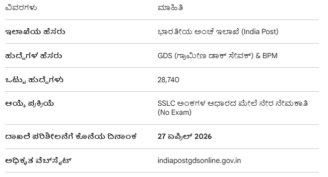 ನಮಸ್ಕಾರ ಸ್ನೇಹಿತರೆ, KPSCVaani ಗೆ ಸ್ವಾಗತ. ಯಾವುದೇ ಲಿಖಿತ ಪರೀಕ್ಷೆಯಿಲ್ಲದೆ, ಕೇವಲ 10ನೇ ತರಗತಿ (SSLC) ಅಂಕಗಳ ಆಧಾರದ ಮೇಲೆ ಕೇಂದ್ರ ಸರ್ಕಾರಿ ಉದ್ಯೋಗ ಪಡೆಯುವ ಕನಸು ಕಾಣುತ್ತಿರುವ ಅಭ್ಯರ್ಥಿಗಳಿಗೆ ಭರ್ಜರಿ ಸಿಹಿಸುದ್ದಿ! 2026ರ ಫೆಬ್ರವರಿಯಲ್ಲಿ ಭಾರತೀಯ ಅಂಚೆ ಇಲಾಖೆ (India Post) ಕರೆದಿದ್ದ 28,740 ಗ್ರಾಮೀಣ ಡಾಕ್ ಸೇವಕ್ (GDS) ಮತ್ತು ಬ್ರಾಂಚ್ ಪೋಸ್ಟ್ ಮಾಸ್ಟರ್ (BPM) ಹುದ್ದೆಗಳ ನೇಮಕಾತಿಗೆ ಸಂಬಂಧಿಸಿದಂತೆ ಬಹುನಿರೀಕ್ಷಿತ 2ನೇ ದಾಖಲೆ ಪರಿಶೀಲನಾ ಪಟ್ಟಿಯನ್ನು (2nd DV List) ಇದೀಗ ಅಧಿಕೃತವಾಗಿ ಪ್ರಕಟಿಸಲಾಗಿದೆ.