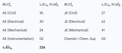 ಹುದ್ದೆಗಳ ವಿವರ: ಒಂದು ನೋಟ (Vacancy Table)