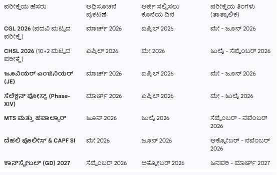 SSC ಪರೀಕ್ಷಾ ಕ್ಯಾಲೆಂಡರ್ 2026-27ರ ಪ್ರಮುಖಾಂಶಗಳು