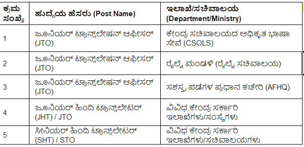ಉತ್ತಮ ವೇತನ ಶ್ರೇಣಿ ಹಾಗೂ ಭವಿಷ್ಯದ ಭದ್ರತೆಯನ್ನು ಒದಗಿಸುವ ಈ ಹುದ್ದೆಗಳಿಗೆ ದೇಶದಾದ್ಯಂತ ಅರ್ಹ ಅಭ್ಯರ್ಥಿಗಳಿಂದ ಆನ್ಲೈನ್ (Online) ಮೂಲಕ ಅರ್ಜಿಗಳನ್ನು ಆಹ್ವಾನಿಸಲಾಗಿದೆ. ಹಿಂದಿ ಮತ್ತು ಇಂಗ್ಲಿಷ್ ಭಾಷೆಯಲ್ಲಿ ಪದವಿ ಅಥವಾ ಸ್ನಾತಕೋತ್ತರ ಪದವಿ (ಅನುವಾದದಲ್ಲಿ ಡಿಪ್ಲೊಮಾ) ಹೊಂದಿರುವ ಯುವಕ-ಯುವತಿಯರು ಈ ಭರ್ಜರಿ ಅವಕಾಶವನ್ನು ಬಳಸಿಕೊಂಡು ತಮ್ಮ ವೃತ್ತಿಜೀವನವನ್ನು ಉಜ್ವಲಗೊಳಿಸಿಕೊಳ್ಳಲು ಇದೊಂದು ಸರಿಯಾದ ಸಮಯವಾಗಿದೆ.
