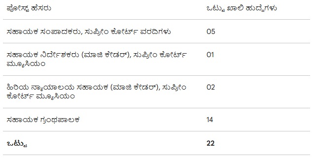 ಒಟ್ಟು ಖಾಲಿ ಹುದ್ದೆಗಳು : 22