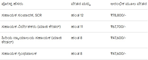 ಸಂಬಳ / ವೇತನ ಮಟ್ಟ : ಹಂತ 8, 11 ಮತ್ತು 12 (7ನೇ CPC)