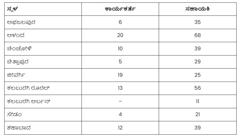 • ಒಟ್ಟು ಹುದ್ದೆಗಳು: 412 (ಕಲಬುರಗಿ ಜಿಲ್ಲೆಯಾದ್ಯಂತ).